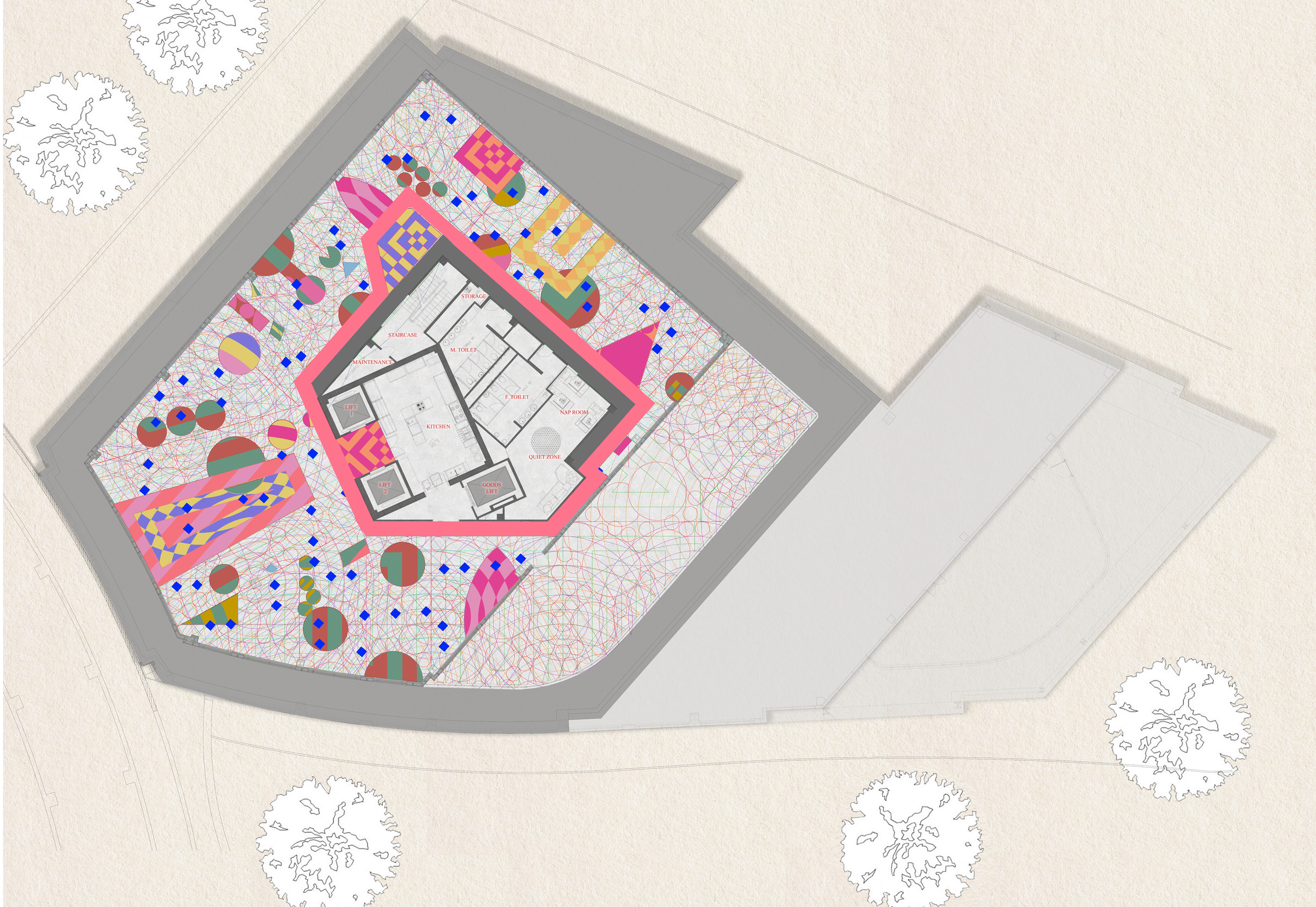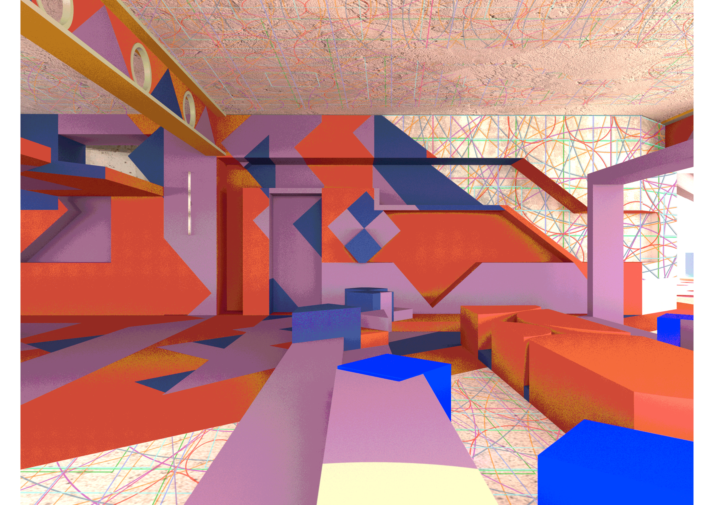 This space emerges from the chaos of layered patterns—a built form shaped by the process of overwriting. At its core, this project is about designing through play, for play. By stacking systems and letting them contradict, I used rules to eventually break free from them. The process wasn’t traditional—it was instinctive, experimental, and intentionally misaligned.